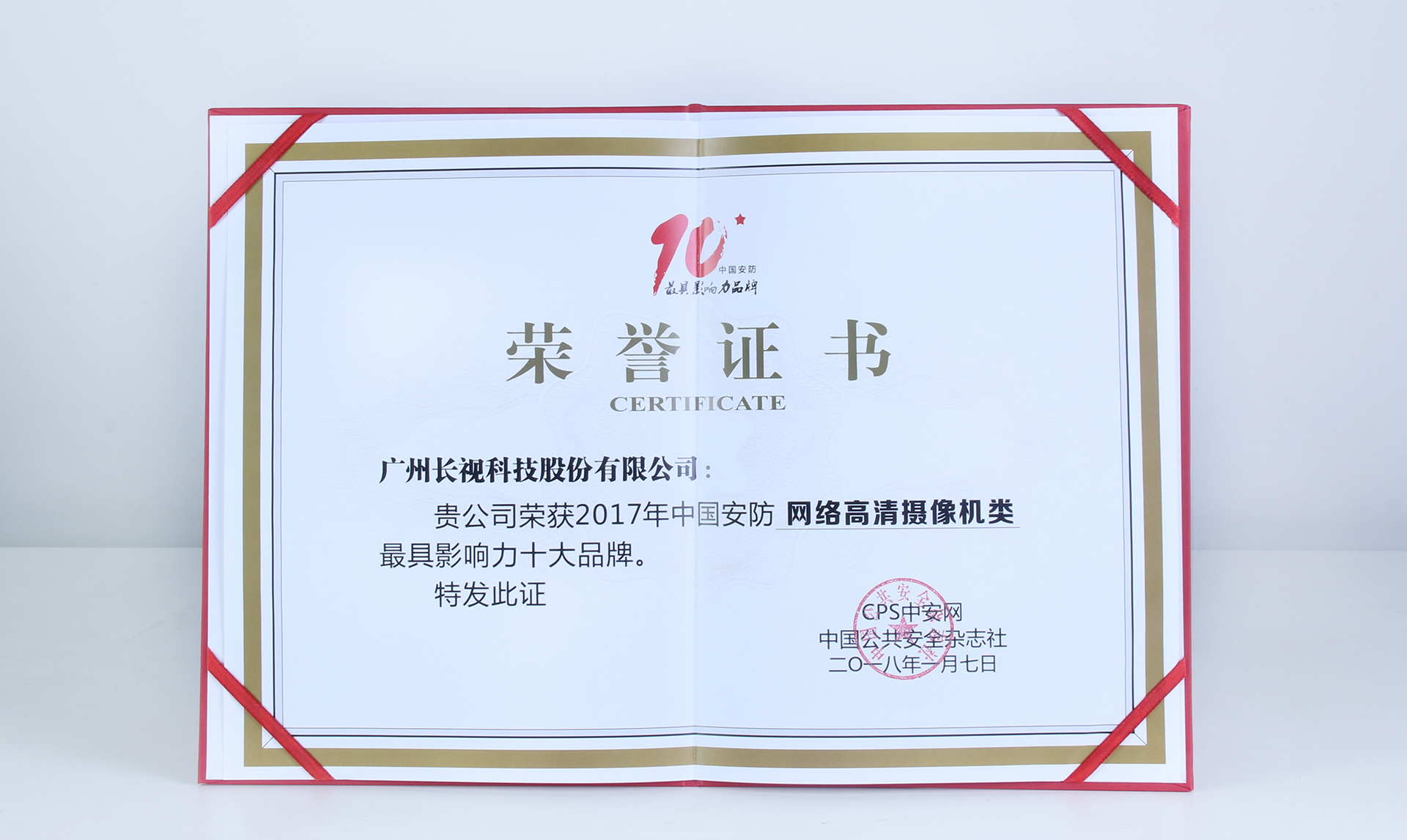 祝賀長視科技榮獲《2017年中國安防十大最具影響力品牌》Date: 2018-01-12