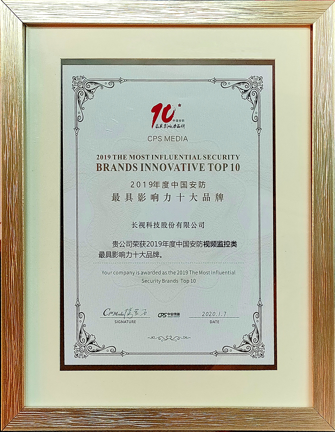 喜訊!長視科技榮獲2019年中國安防最具影響力十大品牌獎Date: 2020-01-08